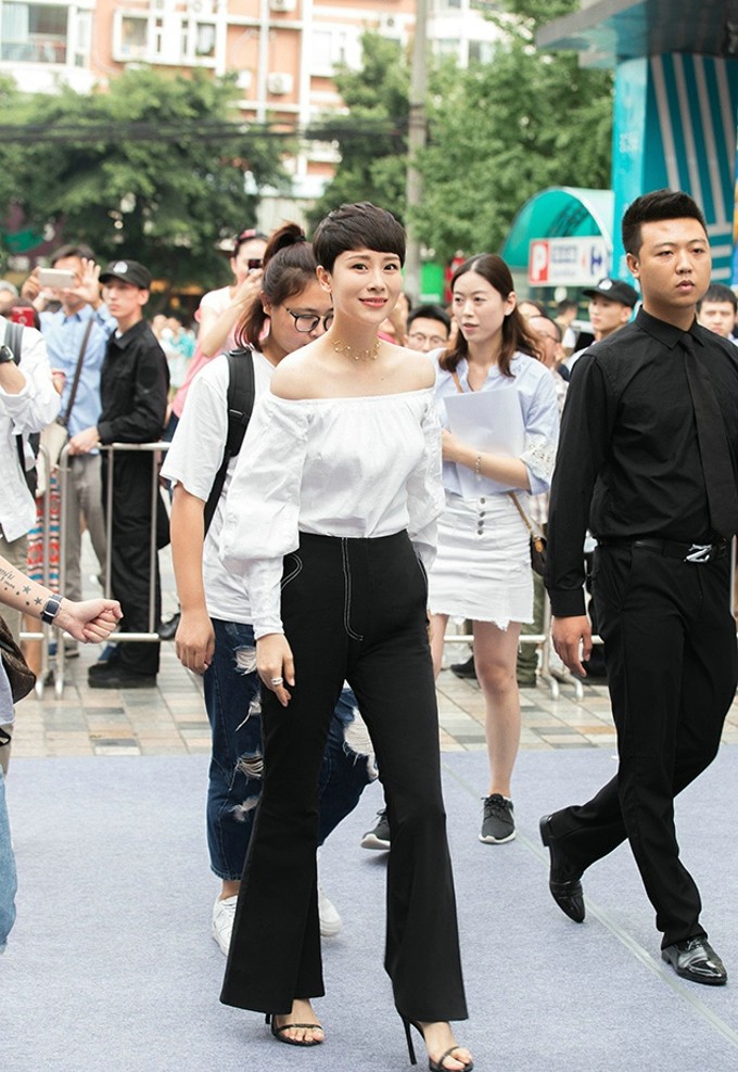 童菲轻撩裙摆,展露优雅身姿,脸上绽放出如夏日阳光般明媚的笑容