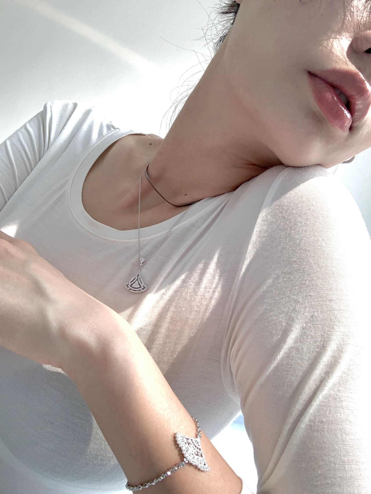 余声微微仰首,颈间线条优美,黑色蕾丝映衬如月光下的静谧湖面